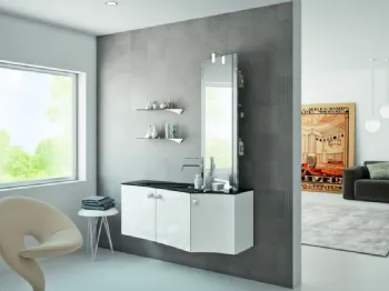 Mobili bagno sospesi Miyo 01 di Synergie: scopri l'Arredo Bagno in laccato lucido moderno e arreda la stanza del benessere.