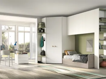 Camerette componibili per ragazzi: scopri il modello in laccato opaco Camera per single Room105 di Zg Mobili per stanzette moderne.