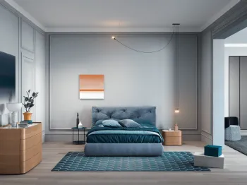 Se desideri letti matrimoniali imbottiti, ti presentiamo il modello Velvet in tessuto per valorizzare la camera da letto.