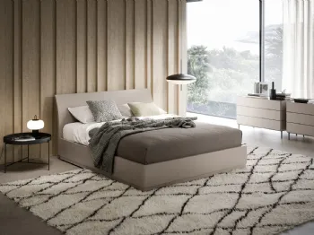 Se desideri letti matrimoniali con contenitore, eccoti il modello Testiera Time in tessuto per valorizzare la zona notte.