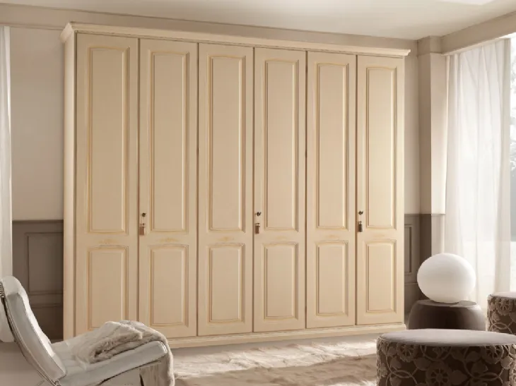 Tra le molteplici composizioni arredative del marchio, questo modello in legno ben si inserisce in una zona notte completa di letti e comodini classici. Gli Armadi a muro con ante battenti sono pezzi immancabili in una camera da letto che si rispetti, arredata al meglio, funzionale e agevole. Nel nostro showroom potrai scegliere tutti i più esclusivi Armadi classici in legno con ante battenti disponibili sul mercato, sempre di grande qualità. L' Armadio Eden di Ferretti e Ferretti in legno che vedi in foto, tra i vari modelli a muro classici di Ferretti e Ferretti, coniuga design e praticità. Questi mobili trovano posto in camera, per organizzare al meglio gli spazi arricchendone l'estetica: potrai selezionarli seguendo le tue esigenze peculiari. Negli Armadi con ante battenti riponiamo capi di abbigliamento e oggettistica varia e, se dotati di cassetti, assicurano un ulteriore spazio utile per il contenimento.