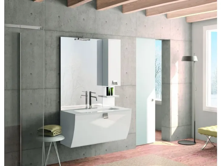 Mobili bagno sospesi Evo Plus 11 di Synergie: scopri l'Arredo Bagno in laccato opaco moderno e arreda la stanza del benessere.