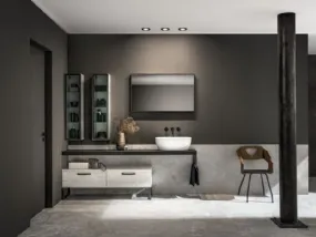 Arreda il bagno di casa moderno perfettamente con Evo Plus 12, mobili bagno da appoggio e complementi in laccato opaco di Synergie.