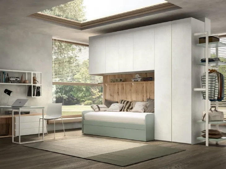 Le Camerette dei nostri bambini sono l'ambiente in cui passeranno i loro primi anni giocando e sognando, perciò è imprescindibile che lo spazio sia agevole. Nel nostro showroom ci occupiamo di seguirti dalla scelta dei mobili per la camera alla progettazione del luogo nel quale i tuoi bimbi cresceranno, giocando e sognando. I nostri bambini passano gran parte della giornata nelle loro camere da letto: rendile adatte per studiare, divertirsi e dormire quotidianamente. Proponiamo in negozio svariate Camerette a ponte moderne per ragazzi del marchio, ideali per seguirli durante il loro sviluppo. Con la Camera con ponte Room144 di Zg Mobili in melaminico ti garantirai un perfetto connubio di ergonomia e sicurezza, ideale per la stanza dei tuoi bambini.