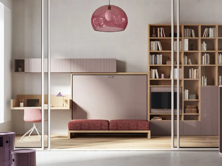 Tra i Letti a scomparsa in laccato opaco presenti in commercio, il modello mostrato in foto ti garantirà il relax totale ogni notte e un ottimale benessere. I modelli salvaspazio su misura di Clever disponibili nel nostro showroom completano le qualità pratiche della tua camera da letto coniugando doti di ergonomia e sicurezza. La camera da letto è l'ambiente di casa che più riflette la personalità di chi la usa, locale per eccellenza dedicato al relax, alla distensione e alla propria riservatezza. Con i Letti a scomparsa salvaspazio dell'azienda Clever, tra cui questo pratico modello, renderete la camera da letto un locale ammobiliato con classe. Nella camera da letto i Letti a scomparsa sono il centro dell’arredo: con le lenzuola e i cuscini, diventano un’isola di comfort che ti accolga alla sera. Visitare il nostro negozio vuol dire vedere dal vivo le più esclusive proposte d'arredo in laccato opaco del noto marchio, tra cui anche quelle ideali per locali piccoli.