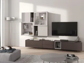 Vuoi allestire un soggiorno pratico e operativo? Ti presentiamo la parete attrezzata Flor 47F03 Torrone e Denver Fasolin dalle forme decise moderne.