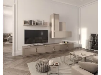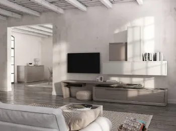 Pareti attrezzate e mobili soggiorno Fasolin: clicca e scopri il modello Cleo CL3 Madreperla e Creta e potrai completare stanze moderne di ogni tipo.