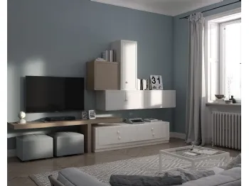 Vuoi progettare un living pratico e dinamico? Ti offriamo la parete attrezzata Cleo CL4 Madreperla e Creta Fasolin dalle linee decise moderne.
