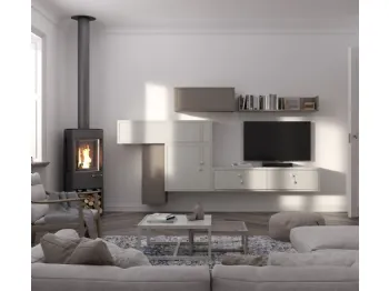 Vuoi allestire un soggiorno operativo e pratico? Ecco a te la parete attrezzata Cleo CL2 Creta e Madreperla Fasolin dalle forme decise moderne.