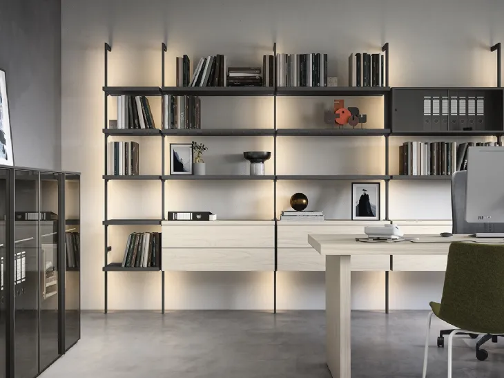 Mobile Ufficio Libreria componibile Uniko di Cinquanta3: su misura per completare gli ambienti di lavoro salvaguardando il comfort di chi ci lavora, con un elevato contenuto estetico. Materiali durevoli, un elevato contenuto estetico e linee ben studiate caratterizzano la ricca serie di mobili per gli ambienti lavorativi del marchio Cinquanta3. Il noto e rinomato marchio lavora sempre in linea con le esigenze personali, di fatto mette a disposizione ogni sorta di Arredo Ufficio in melaminico. In negozio proponiamo diverse composizioni con librerie per ufficio Cinquanta3 in melaminico, sempre in materiali pregiati e resistenti negli anni. Al giorno d'oggi l’Arredo Ufficio deve accontentare le esigenze di funzionalità e comfort per chi svolge il lavoro, quelle di accoglienza e serietà innanzitutto per i clienti.